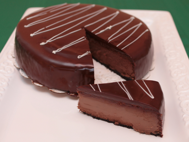 Creamy chocolate cheesecake made with fine French chocolate, Noel Royal, over a chocolate cookie crust, delicately dressed with chocolate ganache. This is a true chocolate lover’s delight.