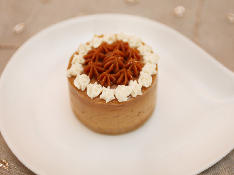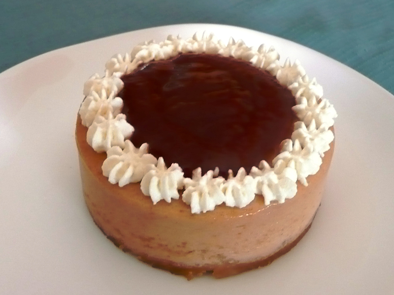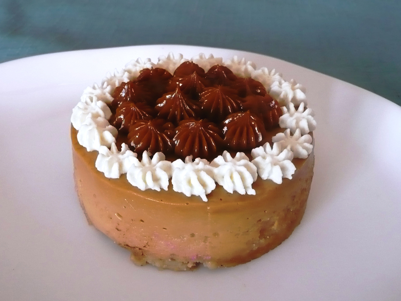 Creamy dulce de leche cheesecake over a butter cookie crust, decorated with dulce de leche and freshly whipped cream. The sweetness factor is just right, making this cheesecake one of our customers' favorite.