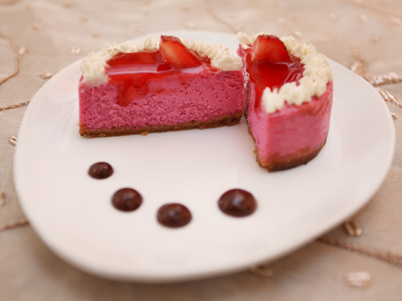 Creamy strawberry cheesecake over a butter cookie crust, topped with freshly whipped cream and strawberries. This one is yours for the taking if you are a strawberry lover.